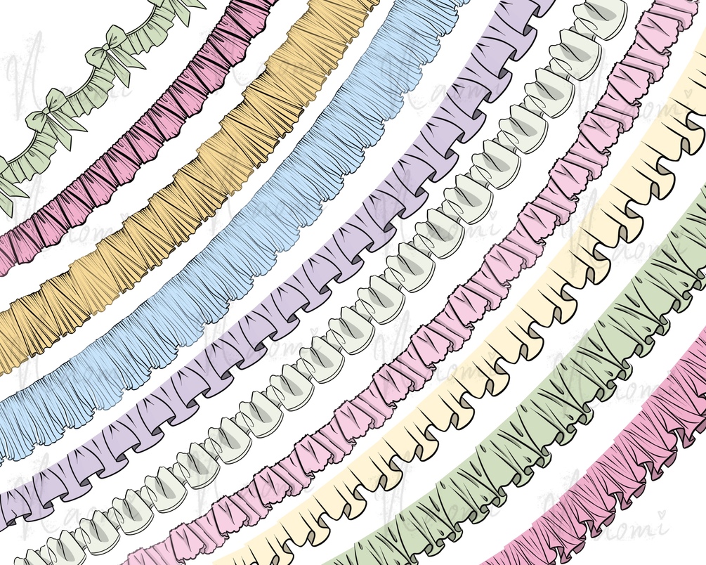 You will receive 35 Procreate Ruffle Brushes, Waistband Brush, Lace Brush, and PDF documents of how to use and install the brushes.